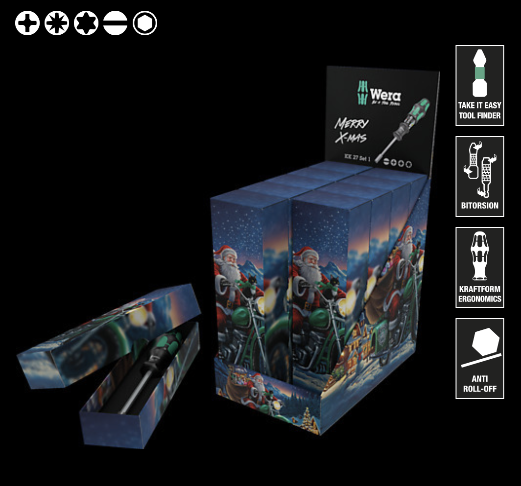 Wera kompakt szerszám, karácsonyi ajándékcsomagolásban. Tökéletes ajándék mindenkinek, aki értékeli a minőségi szerszámokat.